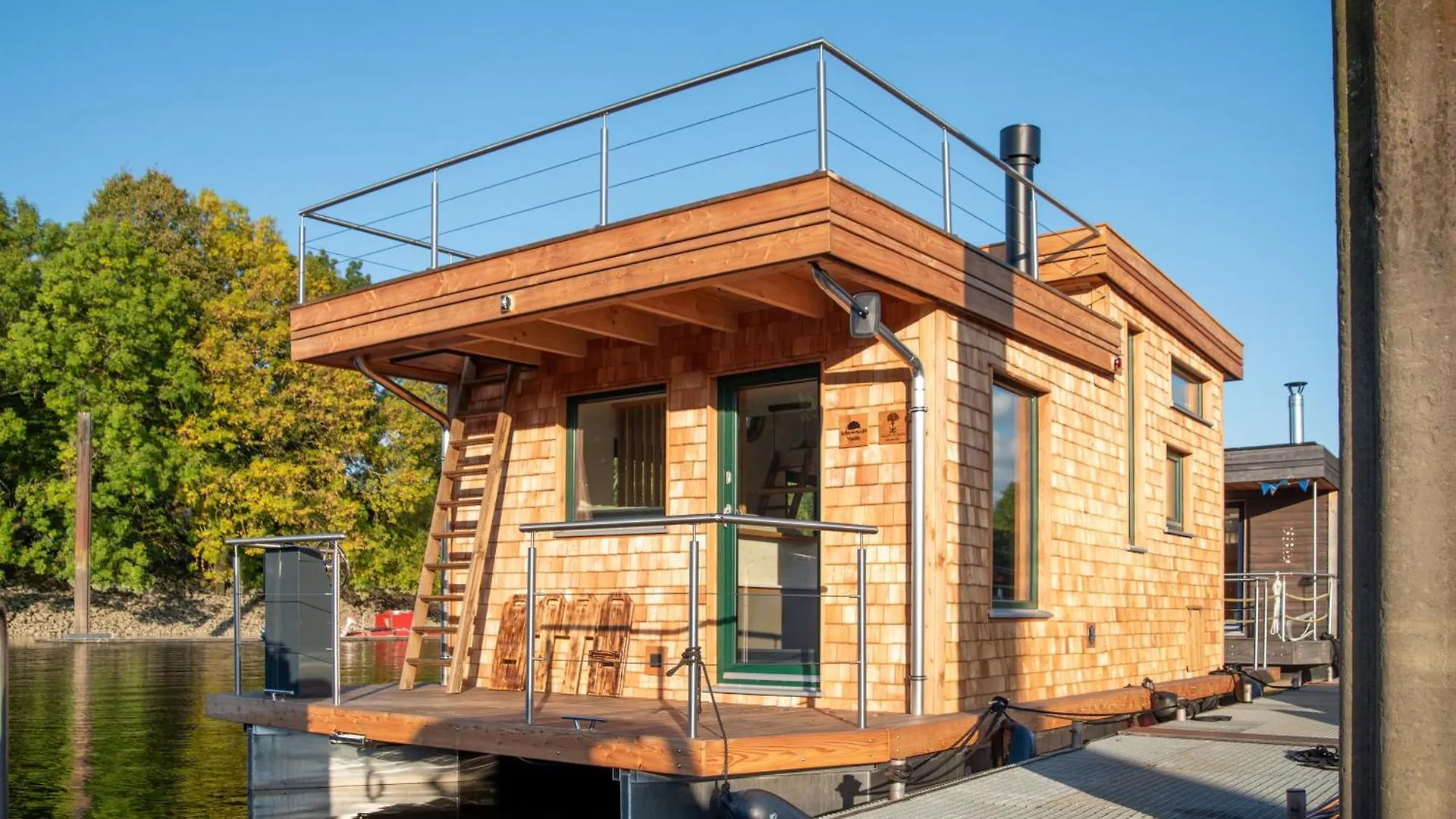 Uriges Tiny Hausboot Mit Kamin Im Winter Auf Der Dove Elbe Amenities